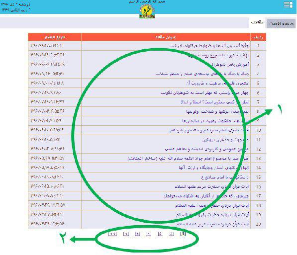 در صورتی که تعداد مقالات بیش از 20 مورد باشد، تعداد صفحات آن در این بخش نمایش داده میشود.