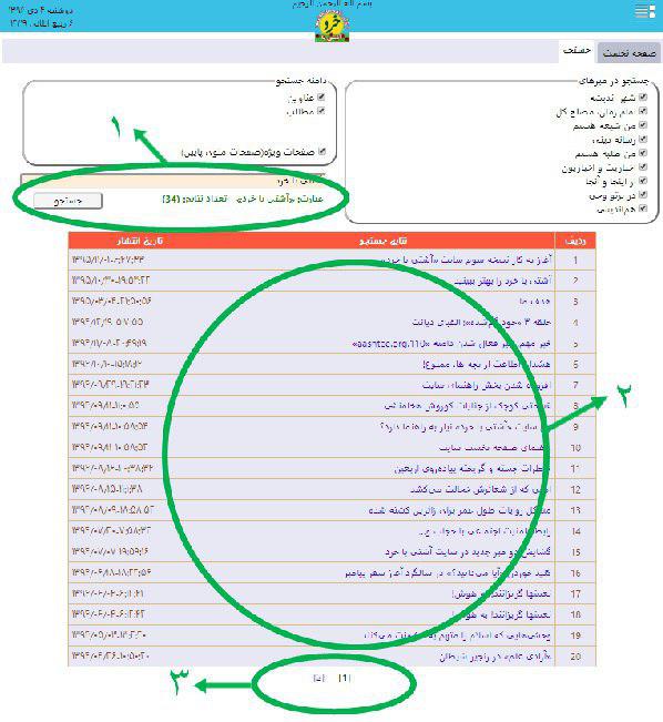 با فعال کردن هر سه تیک یاد شده، جستجو در تمامی عناوین و مطالب و صفحات ویژه عملی می‌شود.