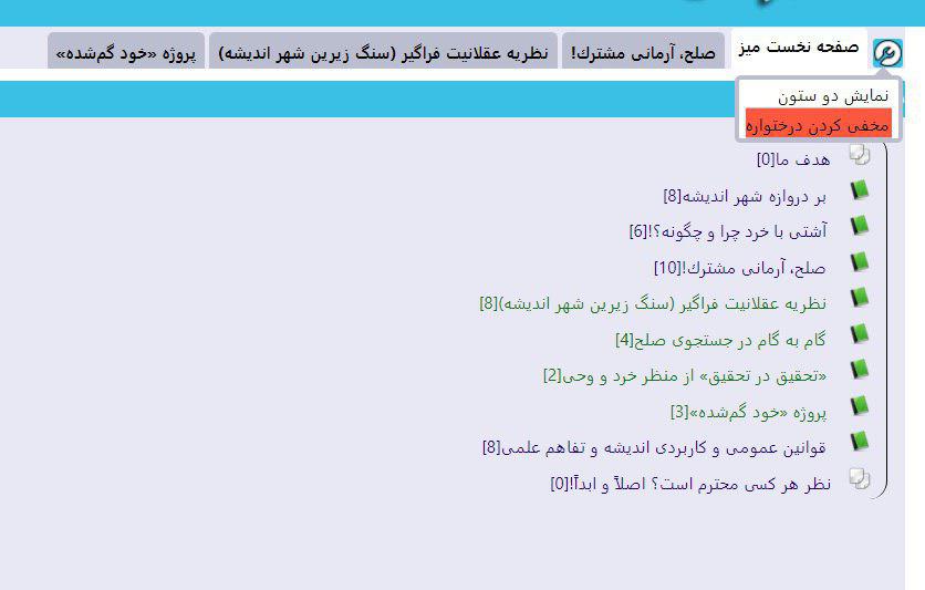 با کلیک روی مخفی کردن درختواره، درختواره پنهان شده و اجزاء سمت چپ صفحه به تنهایی نمایش داده میشود.